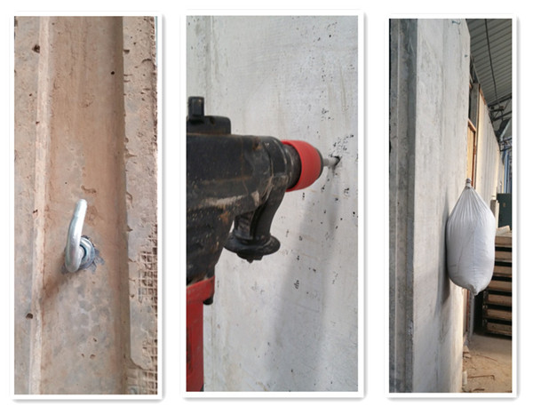 ★該墻板在任意部位打釘或上膨脹螺栓都能緊固而且可吊重物,如空調(diào)等,單點吊掛力在50Kg以上;